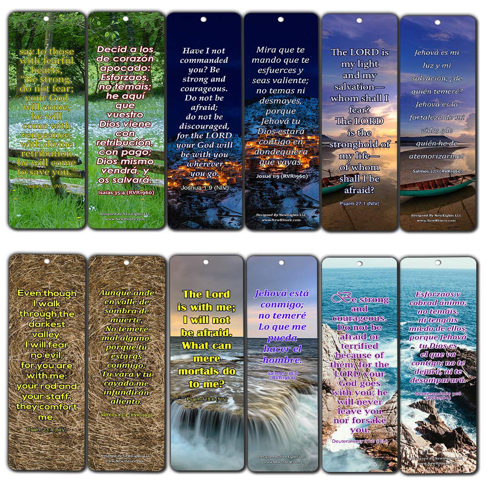 Amazon Com Bilingual Encouraging Bible Verses Bookmarks Overcome Fear 60 Pack Compilation Of Motivational Bible Verses In English And Spanish Office Products